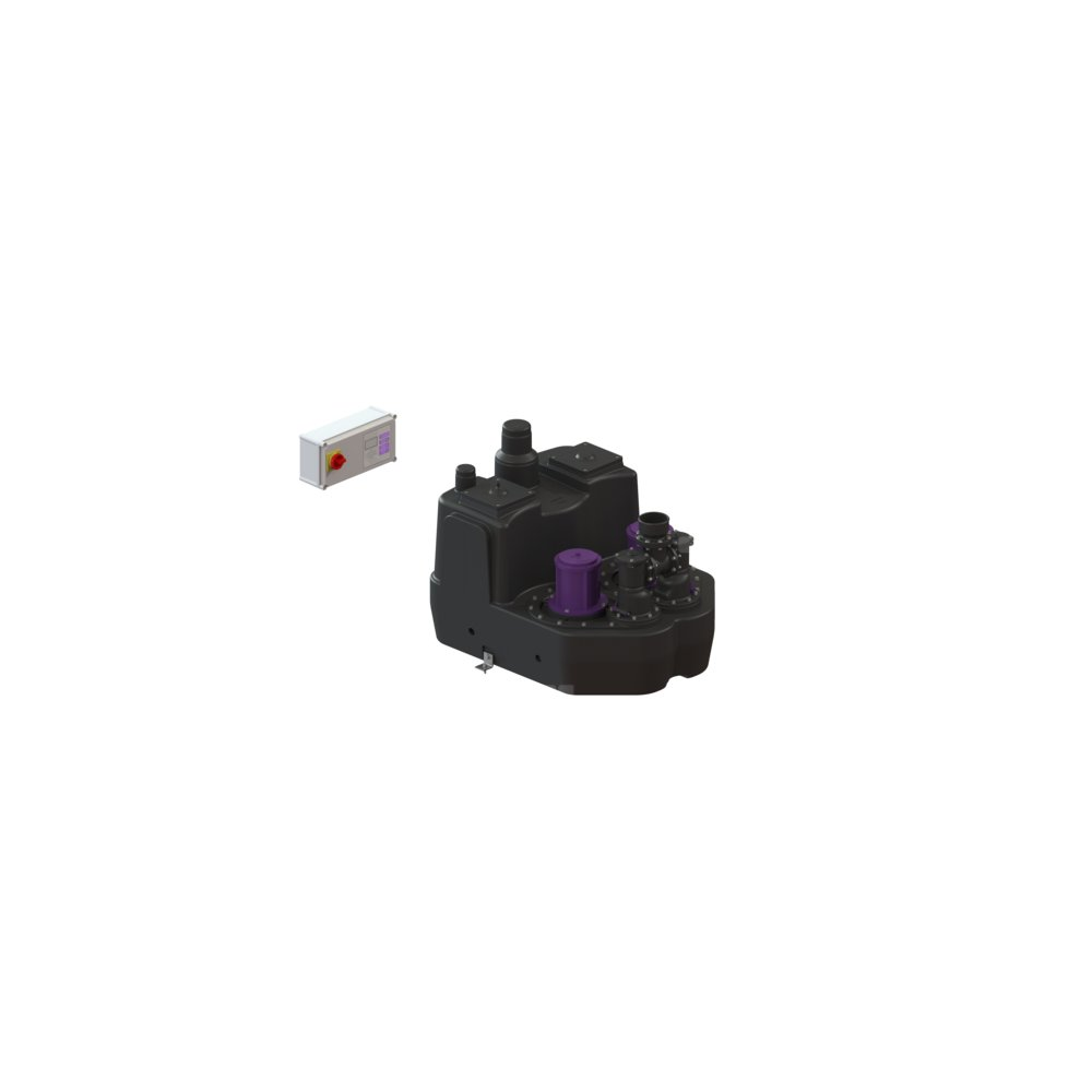 Przepompownia do ścieków zawierających fekalia i bez fekaliów jjest wyposażony w jedną lub dwie pompy zatapialną oraz zawór zwrotny. Pojemnik zbiorczy wykonany z wytrzymałego tworzywa sztucznego (PE) oferuje uniwersalne możliwości podłączenia i posiada przykręcany otwór wyczystkowy.