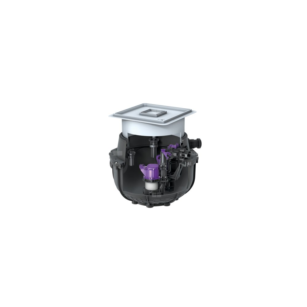 Gotowa do przyłączenia przepompownia do ścieków bez fekaliów jest wyposażony w jedną lub dwie pompy zatapialną oraz zawór zwrotny. Zbiornik wykonany z trwałego tworzywa sztucznego (PE) posiada otwartą komorę pompy. Zamknięcia jednoręczne umożliwiają łatwe wyjęcie zintegrowanych komponentów. Urządzenie do zabudowy w płycie podłogowej jest wstępnie zmontowane do montażu końcowego w miejscu instalacji.