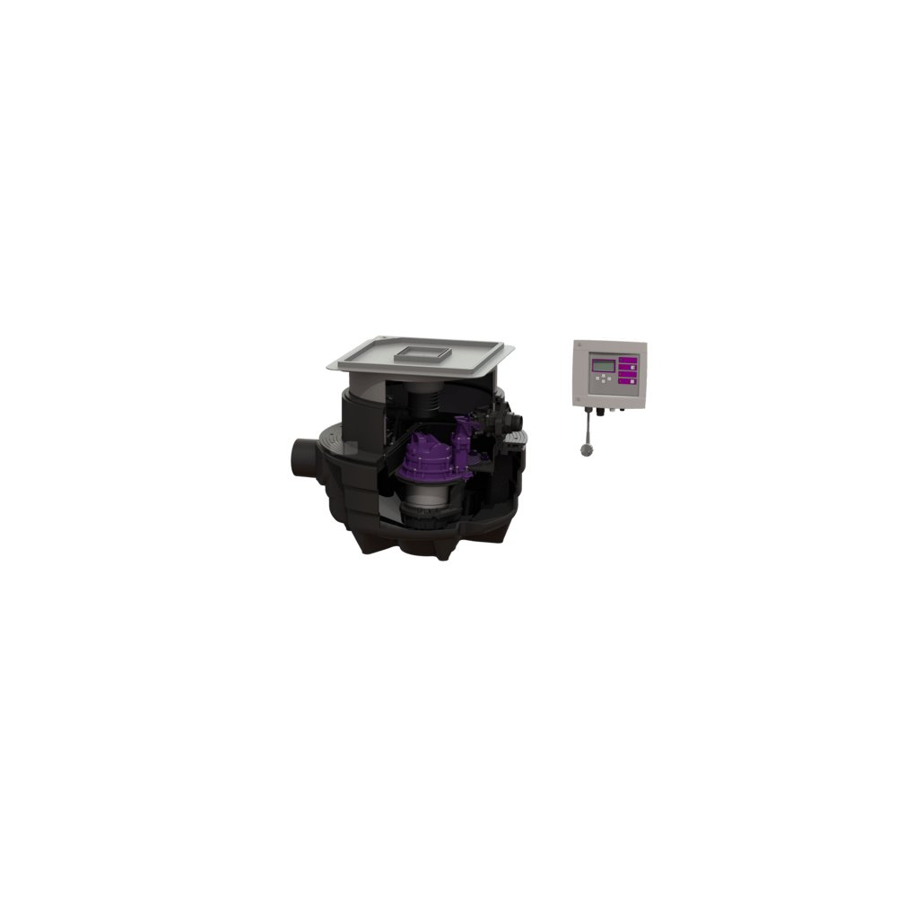 Przepompownia do ścieków zawierających fekalia i bez fekaliów jest wyposażony w jedną lub dwie pompy zatapialną oraz zawór zwrotny. Zbiornik wykonany z trwałego tworzywa sztucznego (PE) posiada zamkniętą komorę pompy. Zamknięcia jednoręczne umożliwiają łatwe wyjęcie zintegrowanych komponentów.