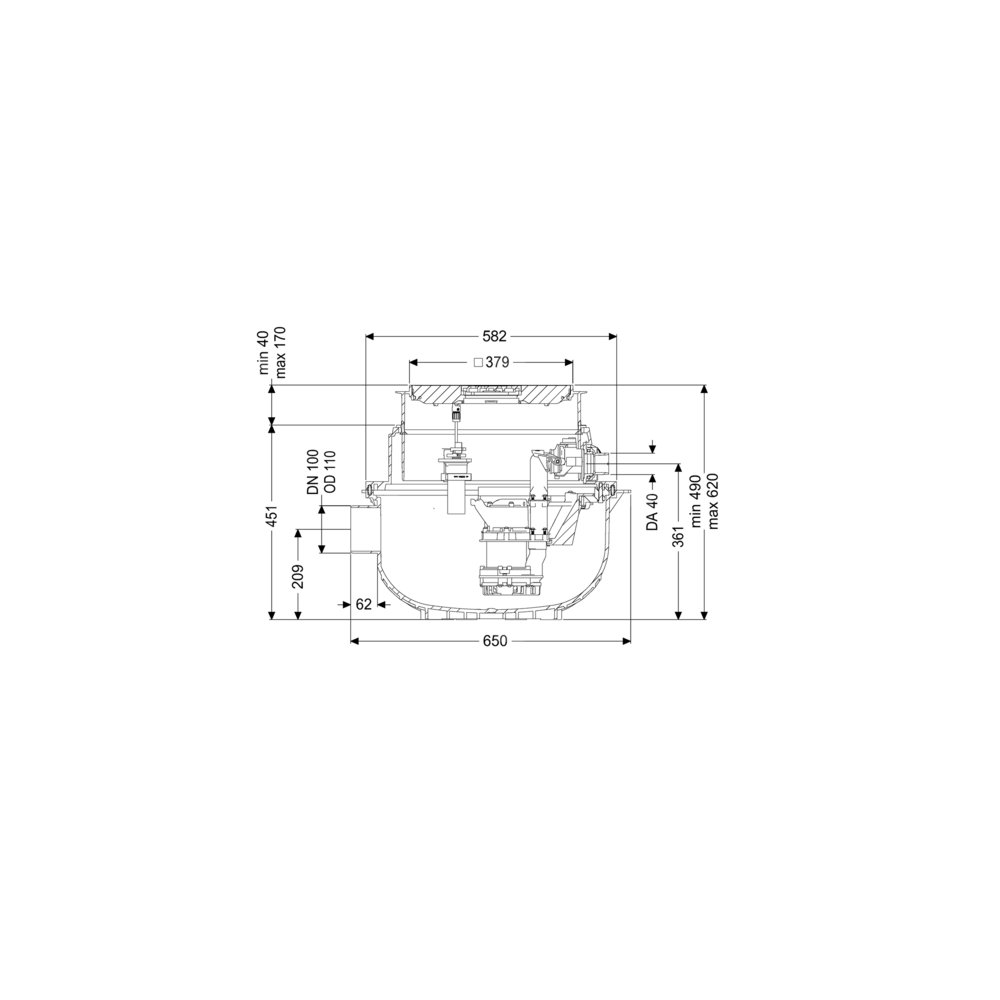KESSEL Przepompownia Aqualift S Compact Tronic, ścieków Ścieki bez fekaliów, zabudowa w płycie podłogowej, z pompą zatapialną GTF 500, rozpoznawania poziomu Rura zanurzeniowa, typ pokrywy pokrywa z rusztem szczelinowym, czarny