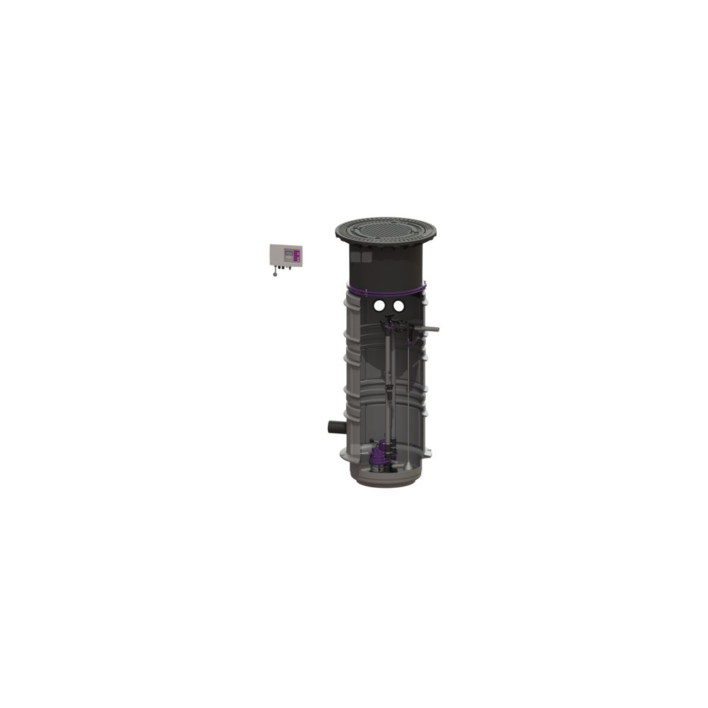 Przepompownia do ścieków bez fekaliów jest wyposażona w jedną lub dwie pompę zanurzeniową oraz zawór zwrotny. Za zbiornik służy system studzienki LW 600 z trwałego tworzywa sztucznego (PE-LLD) z otwartą komorą pompy z uniwersalnymi możliwościami podłączenia. Zamknięcia szybkomocujące umożliwiają łatwe wyjęcie zintegrowanych komponentów.