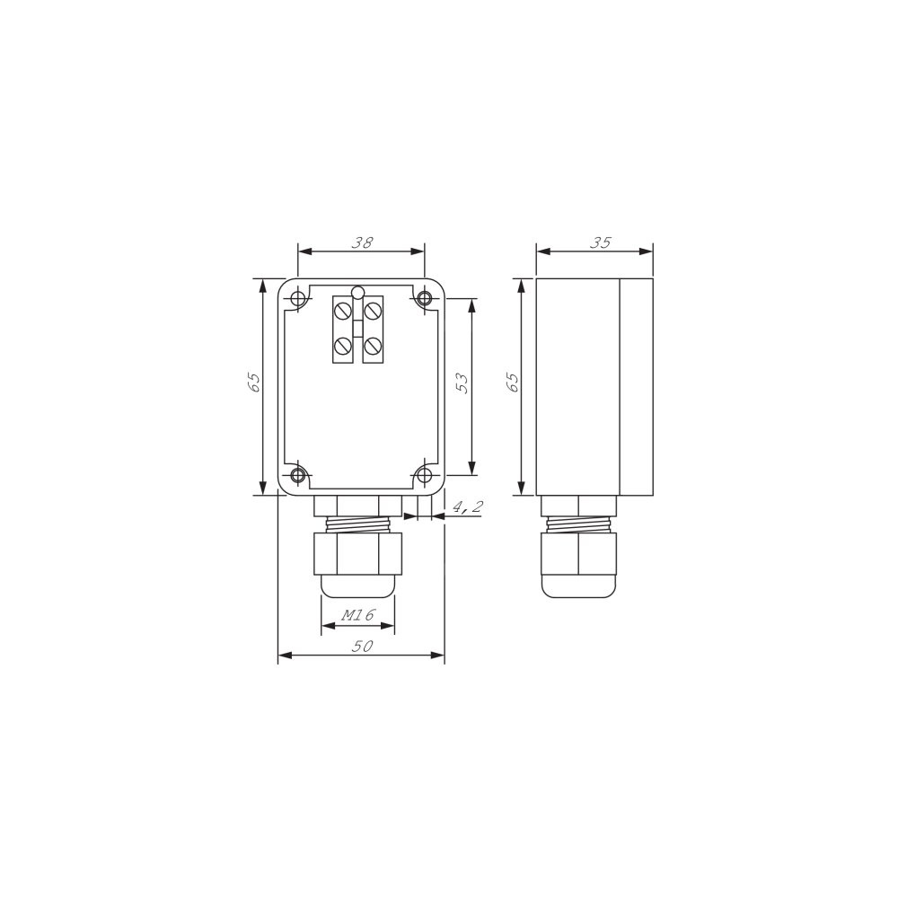 Obudowa z materiału izolacyjnego - poliwęglanu wzmocnionego włóknem szklanym, kolor szary podobny do RAL 7035. Mocowanie za pomocą dwóch do czterech śrub 4 mm (nie wchodzą w zakres dostawy).