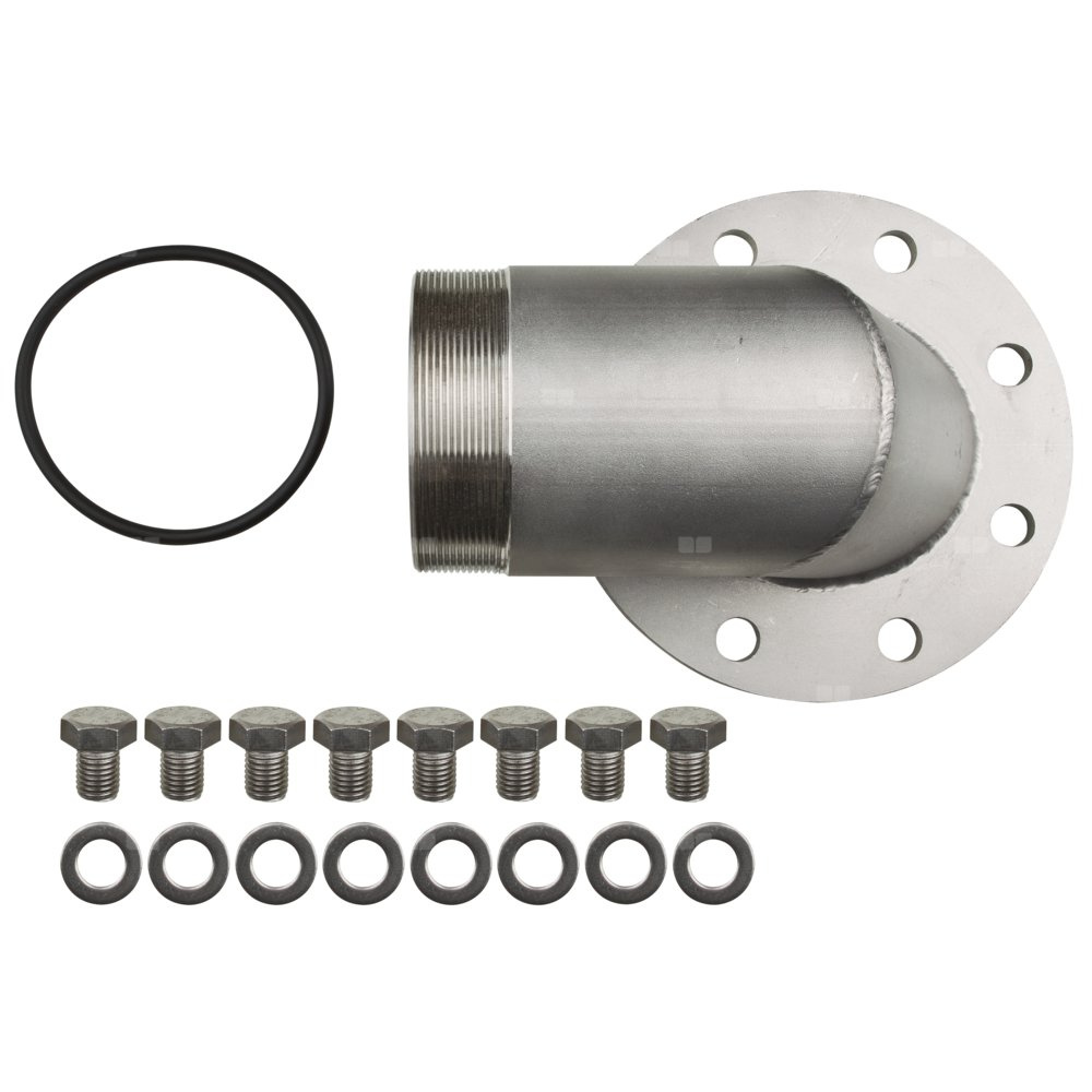 Kolano 90o do montażu do przyłącza tłocznego pompy do bezpośredniego podłączenia węża za pomocą przyłącza, z 1 zestawem osprzętu montażowego