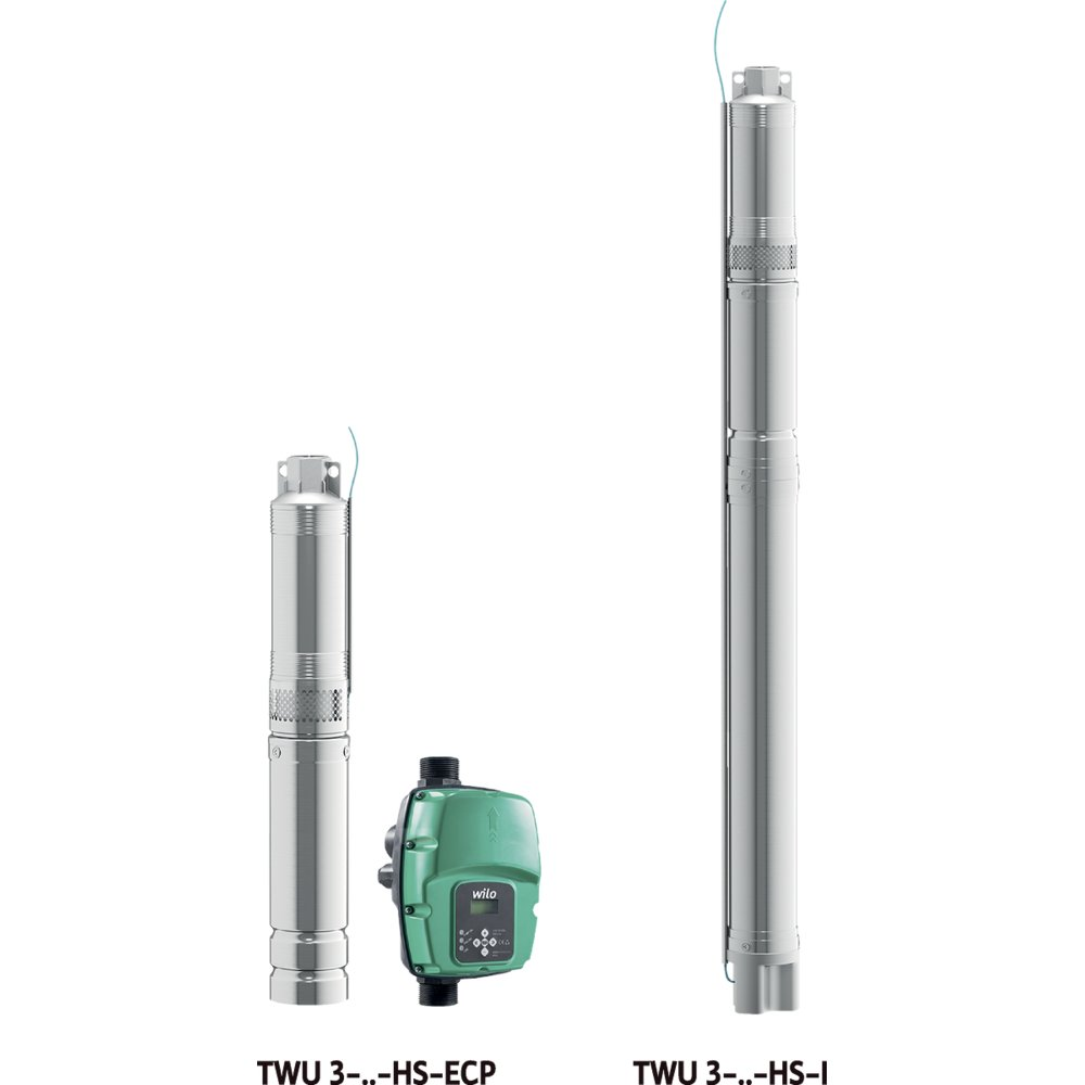 Pompa głębinowa 1-fazowa WILO Sub TWU 3.02-06-HS-ECP-B częstotliwość 50/60 Hz, moc 0.9 kW 10.4 A, prędkość obrotowa 8400 obr/min