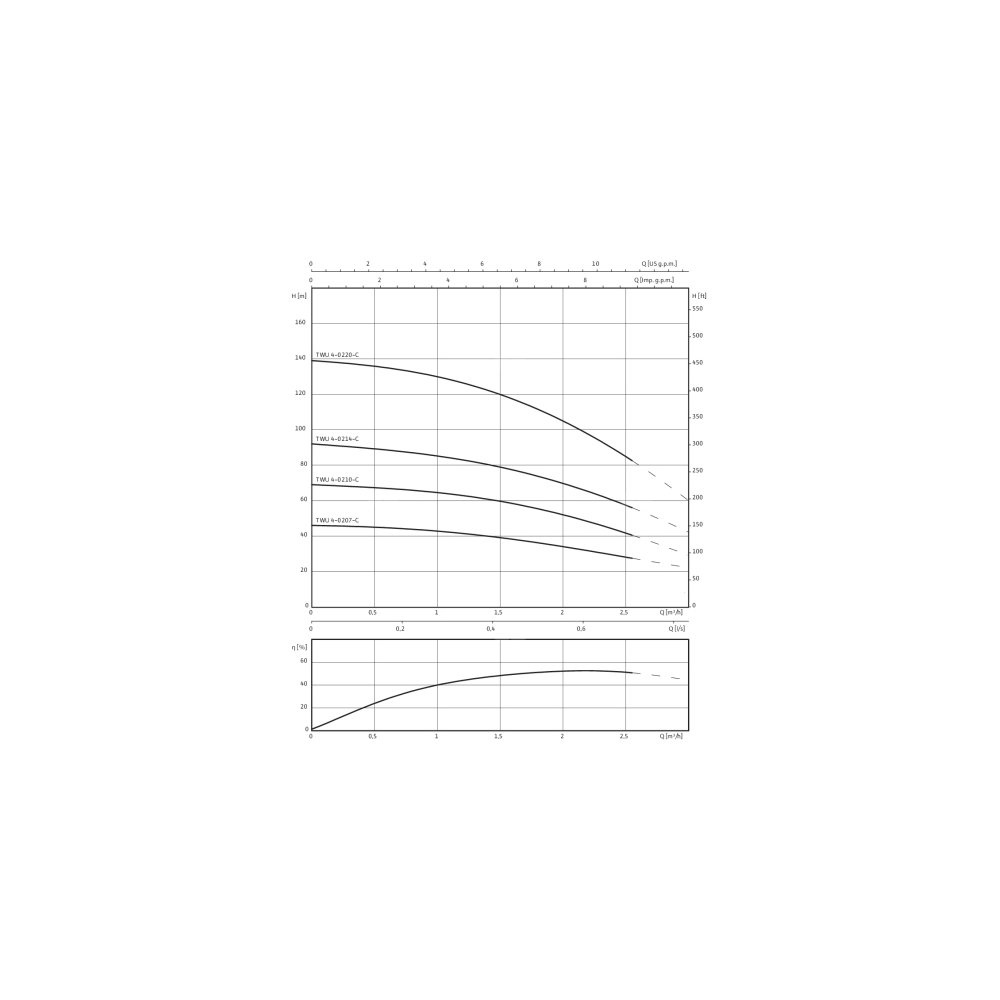Pompa głębinowa 3-fazowa WILO Sub TWU 4-0214-C DM częstotliwość 50 Hz, moc 0.75 kW 2.2 A, prędkość obrotowa 2840 obr/min