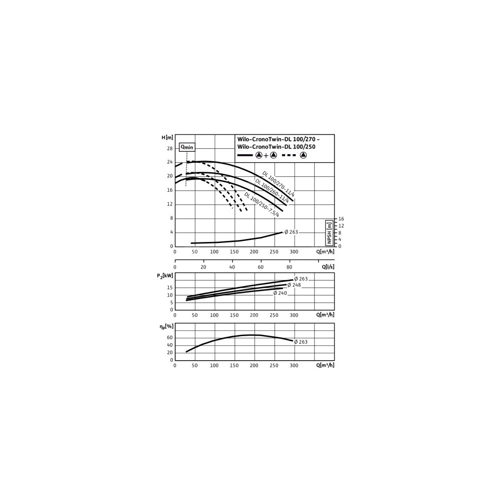 Pompa obiegowa WILO CronoTwin-DL 100/250-7,5/4-IE3 typu in-line z silnikiem znormalizowanym 50 Hz, moc silnika 7.5kW 14.9 A 1450 obr/min, wlot Kołnierz DN 100