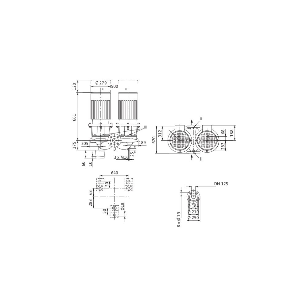 Pompa obiegowa WILO CronoTwin-DL 125/210-5,5/4-S1 typu in-line z silnikiem znormalizowanym 50 Hz, moc silnika 5.5kW 11.1 A 1450 obr/min, wlot Kołnierz DN 125