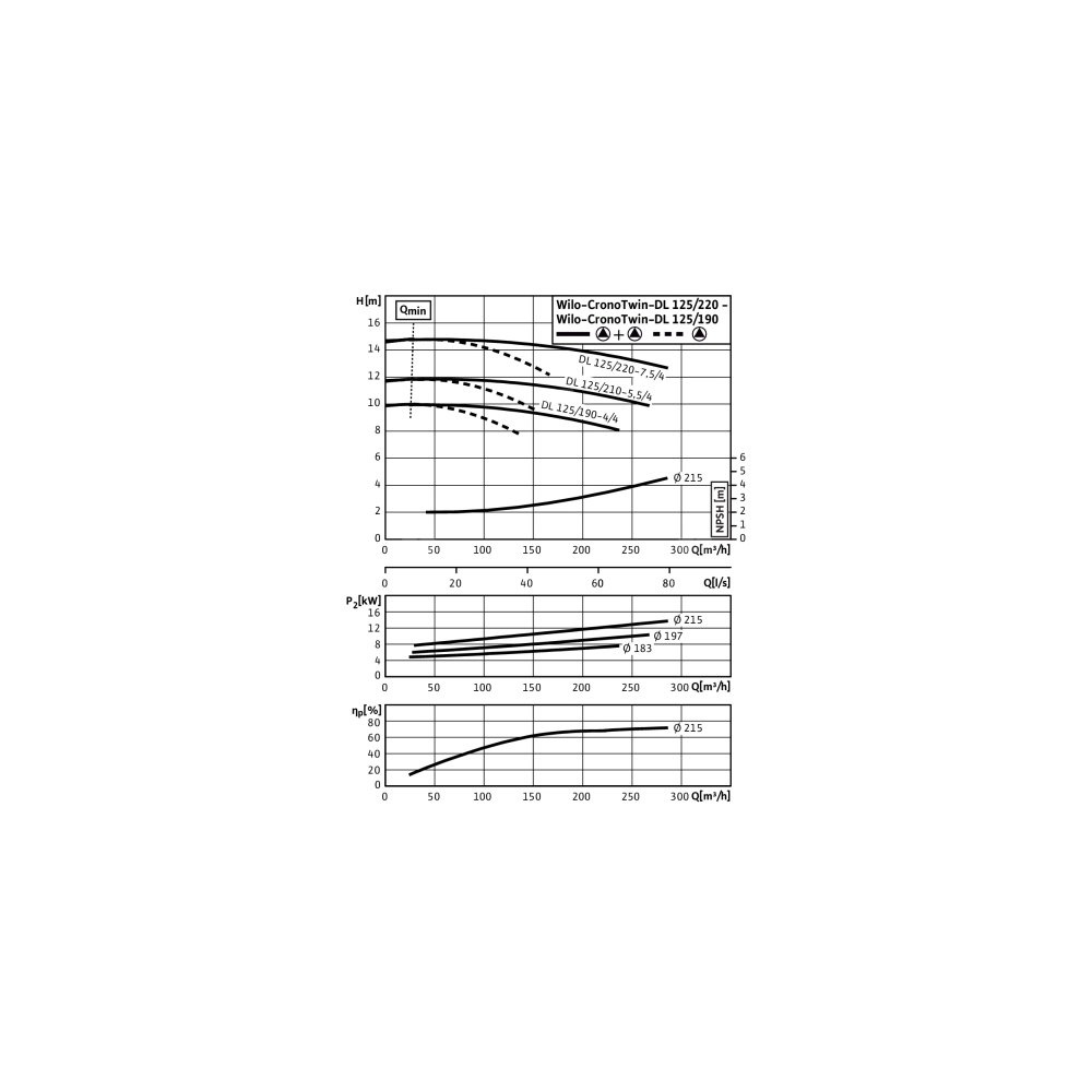 Pompa obiegowa WILO CronoTwin-DL 125/220-5,5/4-IE3 typu in-line z silnikiem znormalizowanym 50 Hz, moc silnika 5.5kW 11.1 A 1450 obr/min, wlot Kołnierz DN 125