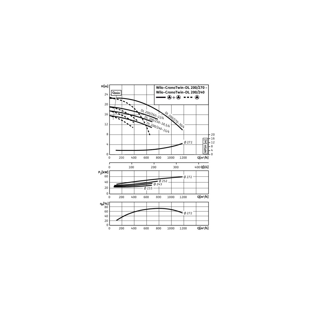 Pompa obiegowa WILO CronoTwin-DL 200/260-22/4-IE3 typu in-line z silnikiem znormalizowanym 50 Hz, moc silnika 22kW 40.2 A 1450 obr/min, wlot Kołnierz DN 200