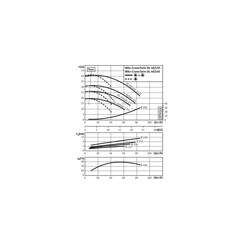 Pompa obiegowa WILO CronoTwin-DL 40/140-2,2/2-IE3 typu in-line z silnikiem znormalizowanym 50 Hz, moc silnika 2.2kW 4.5 A 2900 obr/min, wlot Kołnierz DN 40