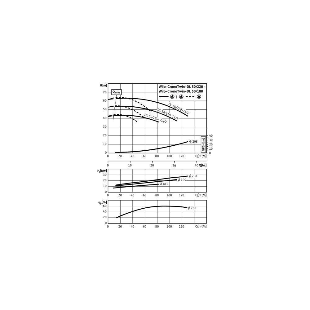 Pompa obiegowa WILO CronoTwin-DL 50/180-7,5/2-IE3 typu in-line z silnikiem znormalizowanym 50 Hz, moc silnika 7.5kW 13.3 A 2900 obr/min, wlot Kołnierz DN 50