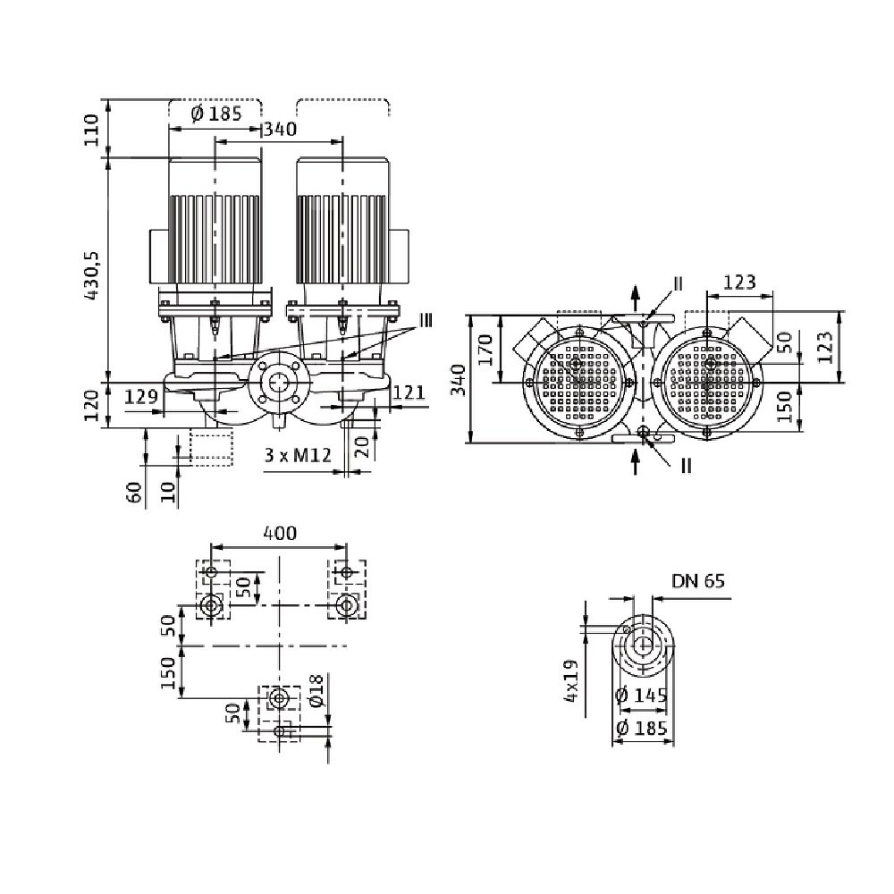 Pompa obiegowa WILO CronoTwin-DL 65/120-0,55/4-S1 typu in-line z silnikiem znormalizowanym 50 Hz, moc silnika 0.55kW 1.4 A 1450 obr/min, wlot Kołnierz DN 65