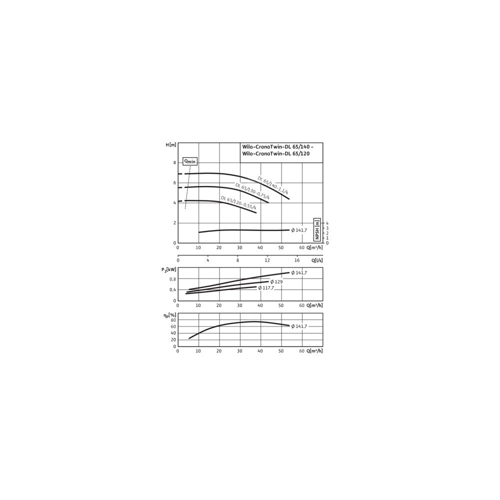 Pompa obiegowa WILO CronoTwin-DL 65/140-1,1/4-IE3 typu in-line z silnikiem znormalizowanym 50 Hz, moc silnika 1.1kW 2.3 A 1450 obr/min, wlot Kołnierz DN 65