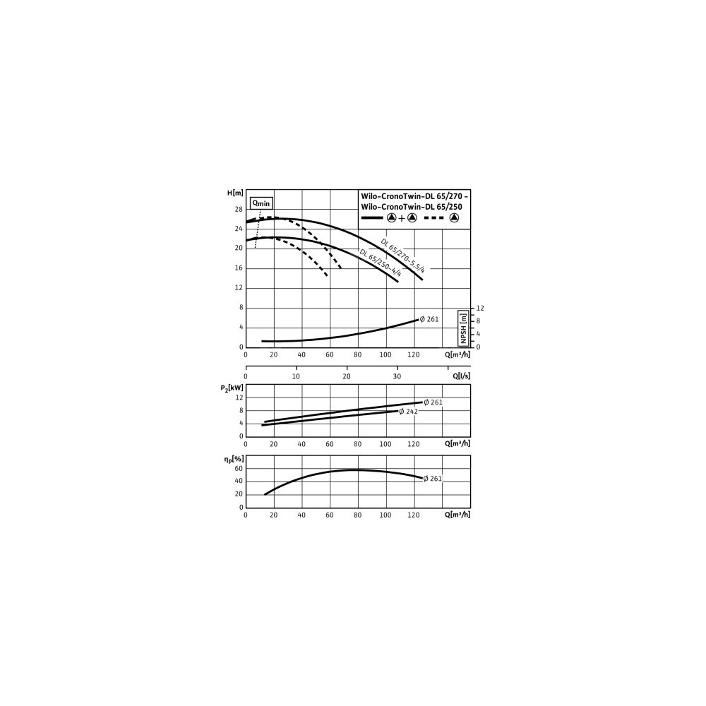 Pompa obiegowa WILO CronoTwin-DL 65/250-3/4-IE3 typu in-line z silnikiem znormalizowanym 50 Hz, moc silnika 3kW 6.5 A 1450 obr/min, wlot Kołnierz DN 65