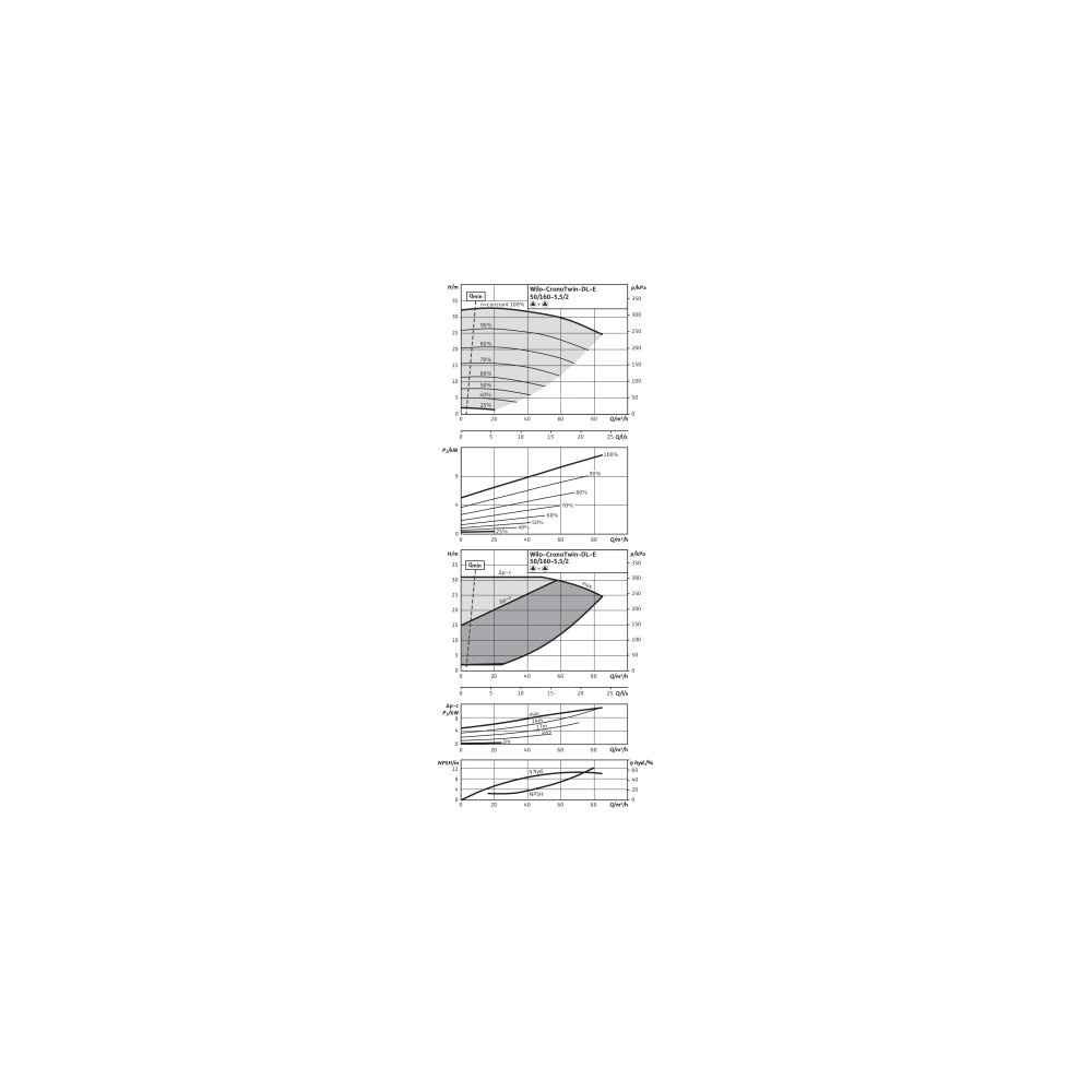 Pompa obiegowa WILO CronoTwin-DL-E 50/160-5,5/2 IE4 typu in-line z silnikiem znormalizowanym 50/60 Hz, moc silnika 5.5kW 10.6 A 2900 obr/min, wlot Kołnierz DN 50