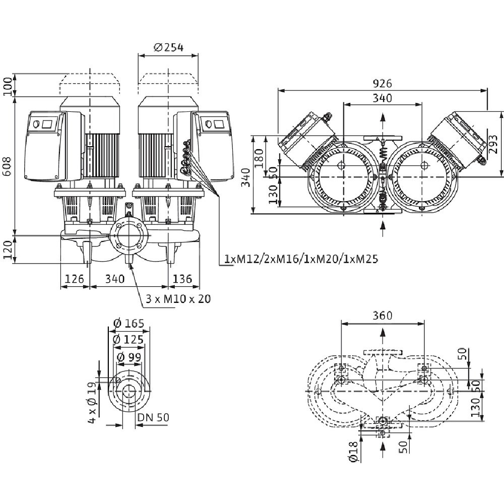Pompa obiegowa WILO CronoTwin-DL-E 50/170-7,5/2-R1-S1 typu in-line z silnikiem znormalizowanym 50/60 Hz, moc silnika 7.5kW 13.4 A 2900 obr/min, wlot Kołnierz DN 50