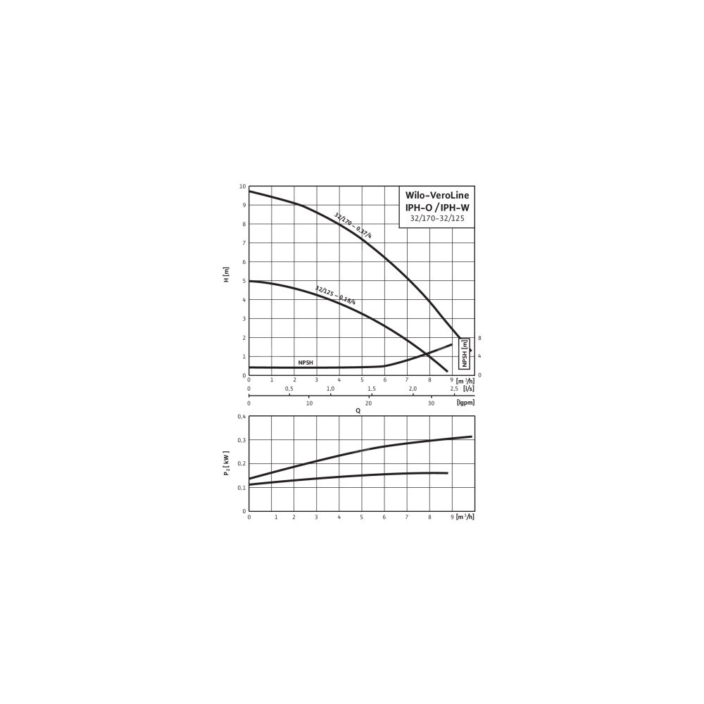 Pompa obiegowa WILO VeroLine-IPH -32/170-0,37/4 typu in-line z silnikiem znormalizowanym 50 Hz, moc silnika 0.37kW 1.12 A 1425 obr/min, wlot Kołnierz DN 32
