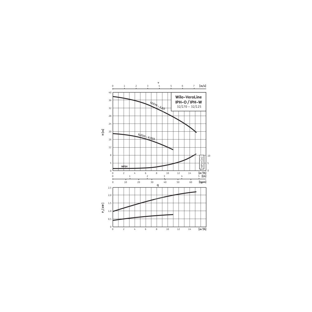 Pompa obiegowa WILO VeroLine-IPH-W 32/125-0,75/2-IE3 typu in-line z silnikiem znormalizowanym 50 Hz, moc silnika 0.75kW 1.63 A 2800 obr/min, wlot Kołnierz DN 32