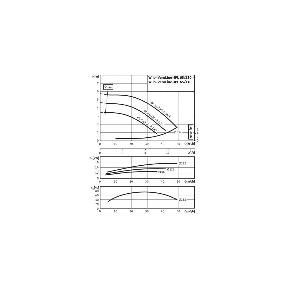 Pompa obiegowa WILO VeroLine-IPL 65/110-0,25/4 typu in-line z silnikiem znormalizowanym 50 Hz, moc silnika 0.25kW 0.69 A 1450 obr/min, wlot Kołnierz DN 65