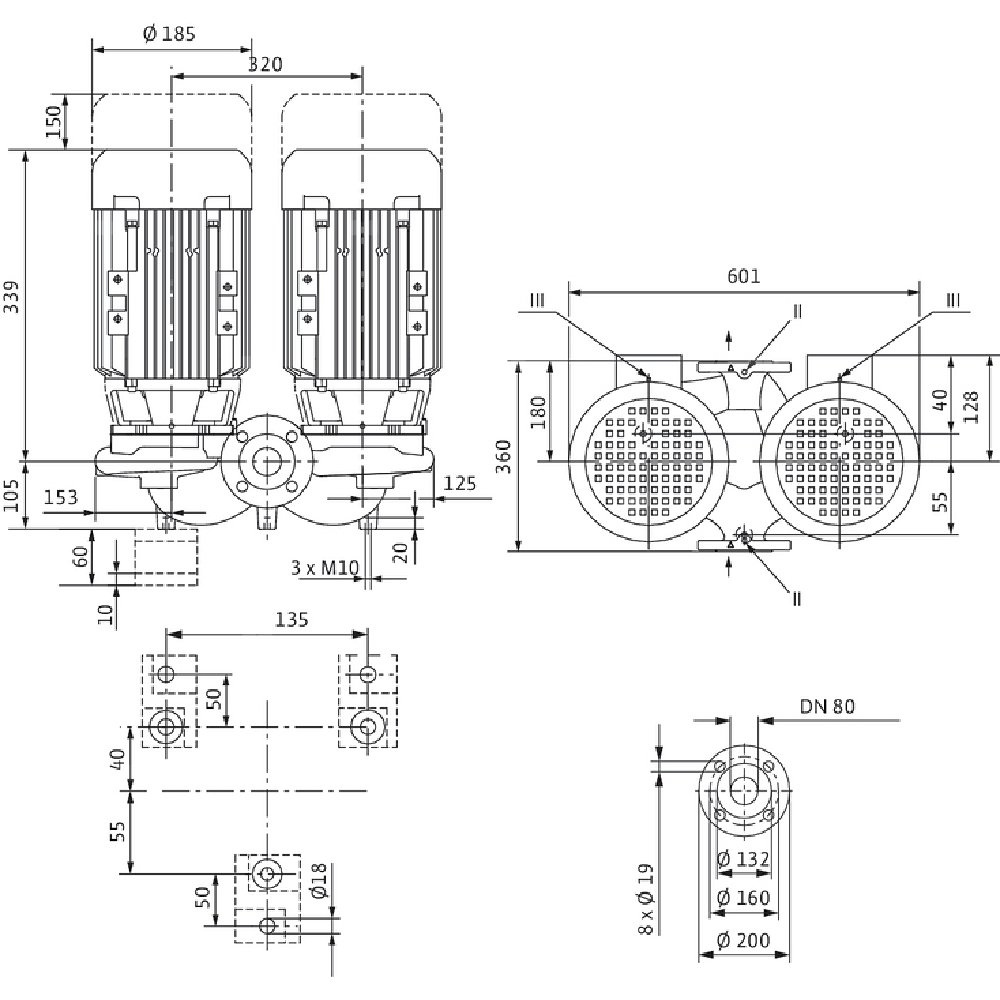 Pompa obiegowa WILO VeroTwin-DPL 80/125-0,75/4-IE3 typu in-line z silnikiem znormalizowanym 50 Hz, moc silnika 0.75kW 1.57 A 1450 obr/min, wlot Kołnierz DN 80