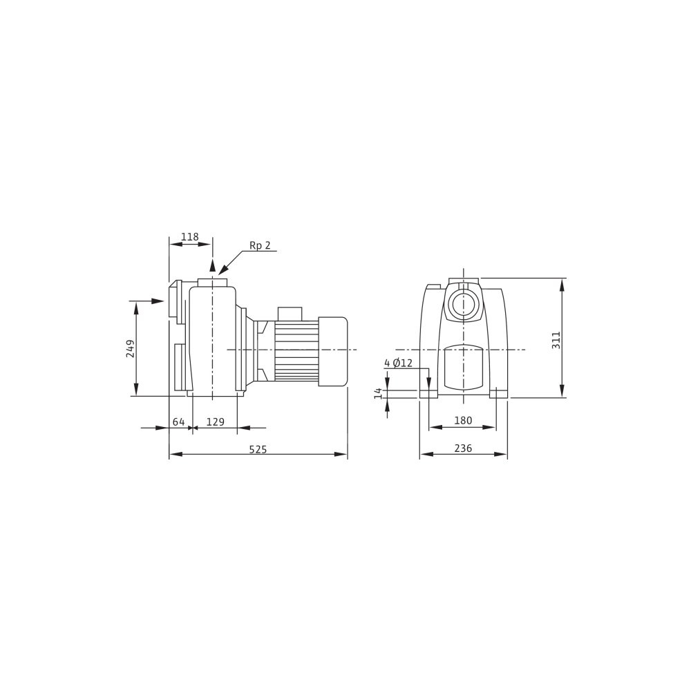 Samozasysająca pompa do wody brudnej, do ustawienia na sucho w sposób przenośny i stacjonarny, do tłoczenia wody czystej i lekko zanieczyszczonej. Układ hydrauliczny z poziomym przyłączem ssącym i pionowym przyłączem tłocznym z przyłączem gwintowanym. Wirnik i korpus pompy mogą być czyszczone przez otwór rewizyjny w hydraulice. Stosowane wirniki to wirniki wielokanałowe. Układ hydrauliczny i wirnik z żeliwa szarego. Napęd następuje poprzez silnik znormalizowany w wersji na prąd trójfazowy z korpusem silnika z aluminium. Kabel zasilający musi zapewnić Użytkownik. Hydraulika i silnik posiadają wspólny wał. Stabilność montażu zapewnia zastosowanie mało podatnej na drgania płyty podstawy.