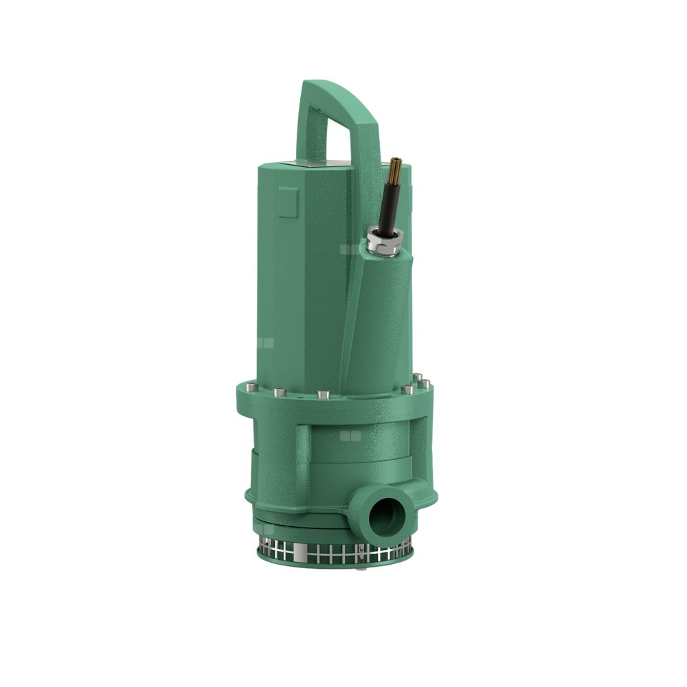 Całkowicie zanurzona pompa zatapialna do wody zanieczyszczonej, pionowe ustawienie mokre, do tłoczenia mediów o temperaturze maks. 95 oC. Agregat w całości z żeliwa szarego. Układ hydrauliczny z przyłączem po stronie tłocznej w formie poziomego, gwintowego połączenia kołnierzowego. Silnik chłodzony powierzchniowo w wersji na prąd trójfazowy z uszczelnieniem komory, termiczną kontrolą silnika oraz monitorowaniem wycieków z komory silnika. Odłączany, odporny na ciepło kabel zasilający z wodoszczelnym na całej długości wpustem na kabel i wolną końcówką kabla. Uszczelnienie po stronie medium i po stronie silnika zapewniają dwa uszczelnienia mechaniczne niezależne od kierunku obrotów.