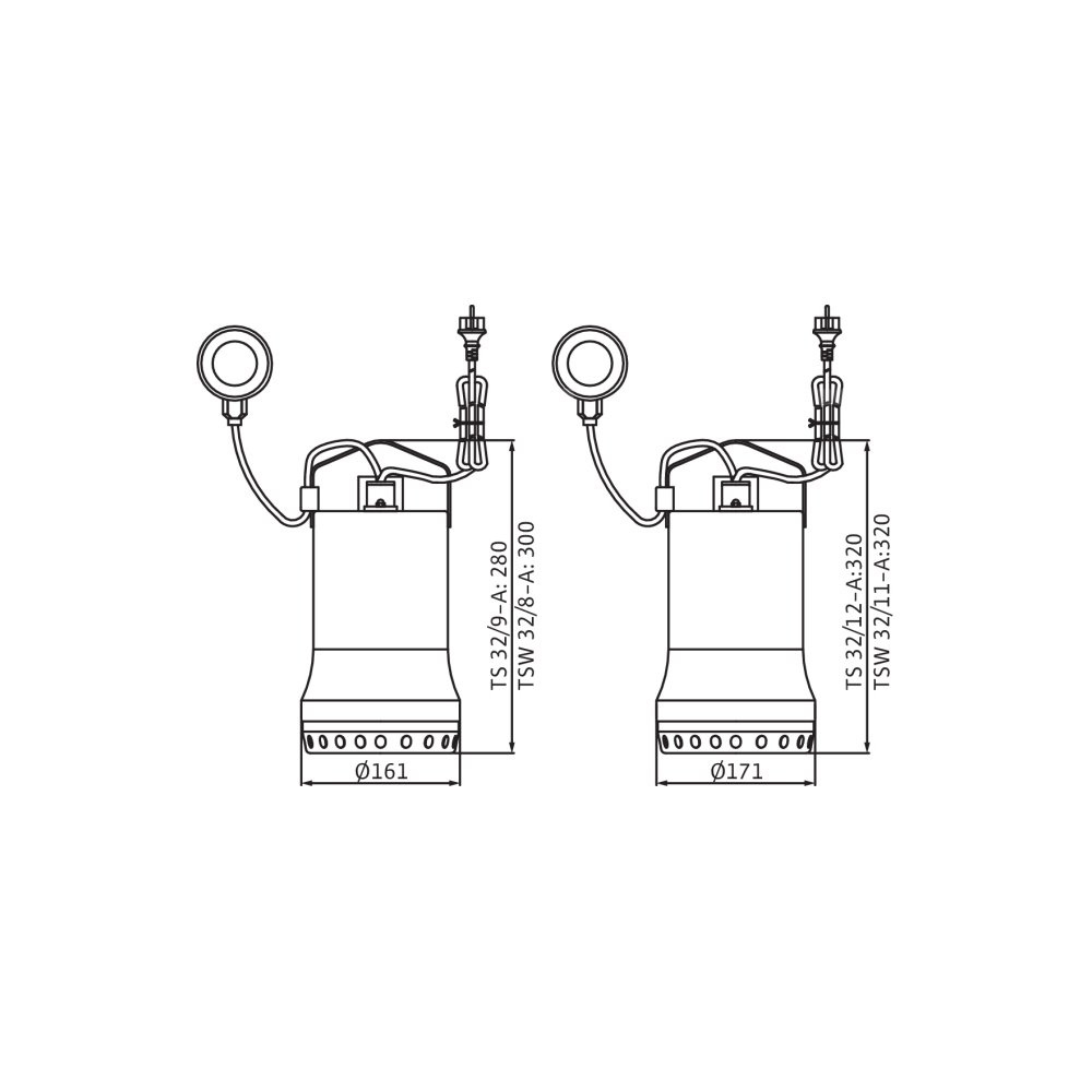 Całkowicie zanurzona pompa zatapialna do wody zanieczyszczonej, do przenośnego ustawienia mokrego, do tłoczenia ścieków bez fekaliów lub wody zanieczyszczonej. Wirnik z tworzywa sztucznego, hydraulika i korpus silnika ze stali nierdzewnej. Hydraulika z pionowym przyłączem gwintowanym ze zintegrowanym zabezpieczeniem przed przepływem zwrotnym i wirnikiem o swobodnym przepływie. Silnik na prąd zmienny z chłodzeniem płaszczowym (do chłodzenia wykorzystywane jest przetłaczane medium między korpusem pompy i korpusem silnika), zintegrowanym kondensatorem roboczym i termiczną kontrolą silnika przed przeciążeniem z automatycznym ponownym włączeniem. Kabel zasilający o długości z zamontowaną wtyczką z uziemieniem i wyłącznikiem pływakowym do automatycznego sterowania poziomem. Do uszczelnienia po stronie medium służy uszczelnienie mechaniczne, natomiast po stronie silnika pierścień uszczelniający wału.