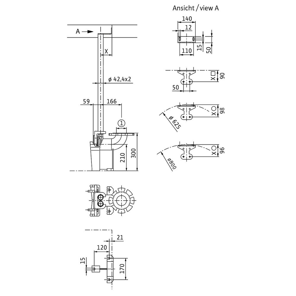Dwie prowadnice (42,4x2 mm) zapewnia Użytkownik!