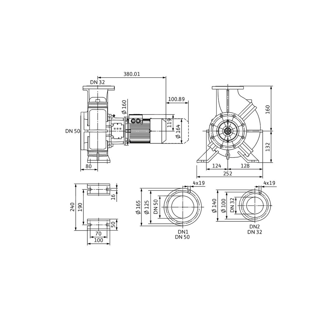 W wersji standardowej silniki w klasie IE3. Pompy z silnikami ≥ 5,5 kW są seryjnie wyposażone w czujniki termistorowe jako zabezpieczenie silnika.