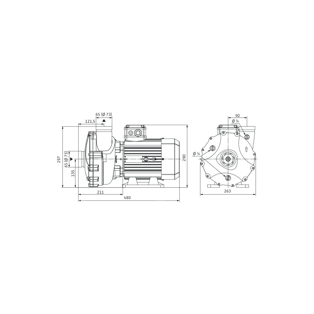 Jednostopniowa dławnicowa pompa wirowa o konstrukcji blokowej do zastosowania w instalacjach wentylacyjnych i klimatyzacyjnych. Odporna na drgania i zwarta konstrukcja zapewniająca cichą pracę, z zamocowanym bezpośrednio na kołnierzu silnikiem indukcyjnym trójfazowym i wałem niedzielonym. Z niezależnym od kierunku obrotów mieszkowym uszczelnieniem mechanicznym oraz wirnikiem redukującym kawitację. Odporny na korozję korpus pompy z tworzywa sztucznego, z przyłączem gwintowanym lub przyłączem Victaulic.