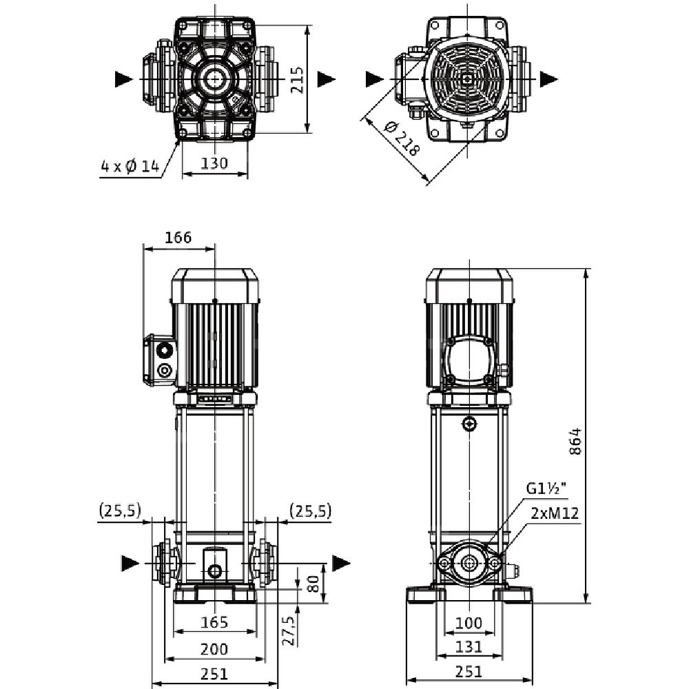 Pompa o kompaktowej konstrukcji z wałem przelotowym silnik-pompa i niezależnym od kierunku obrotów uszczelnieniem mechanicznym. Komory stopni, wirniki i kierownice przepływowe ze stali nierdzewnej. Płyta podstawy pompy z żeliwa z powłoką kataforetyczną z połączeniem kołnierzowym owalnym.