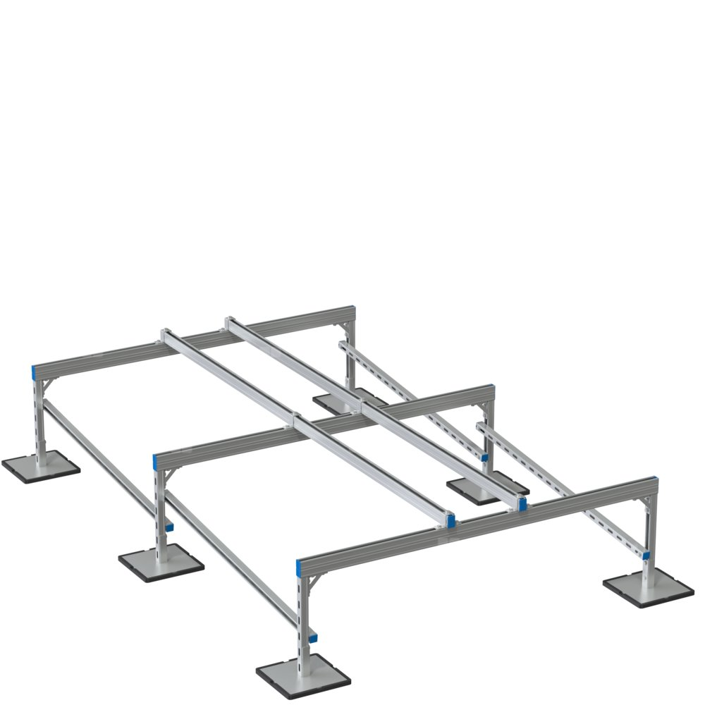 Zastosowanie: instalacje dedykowane dwóm urządzeniom, dla dużych obciążeń. Podpora pod urządzenie o maksymalnej wadze do 2x100 kg. Uwzględniono siłę wiatru i obciążenie śniegiem oraz na równomierny rozkład sił na powierzchni dachu.