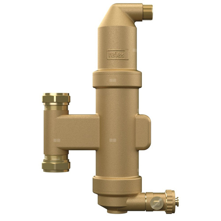 Dwufunkcyjny separator mikropęcherzy powietrza, osadów i zanieczyszczeń do instalacji ogrzewania i chłodzenia wodnego oraz innych instalacji zamkniętych wypełnionych cieczą.