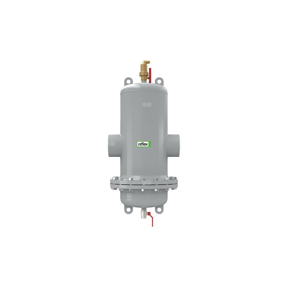 Dwufunkcyjny separator mikropęcherzy powietrza, osadów i zanieczyszczeń do instalacji ogrzewania i chłodzenia wodnego oraz innych instalacji zamkniętych wypełnionych cieczą.