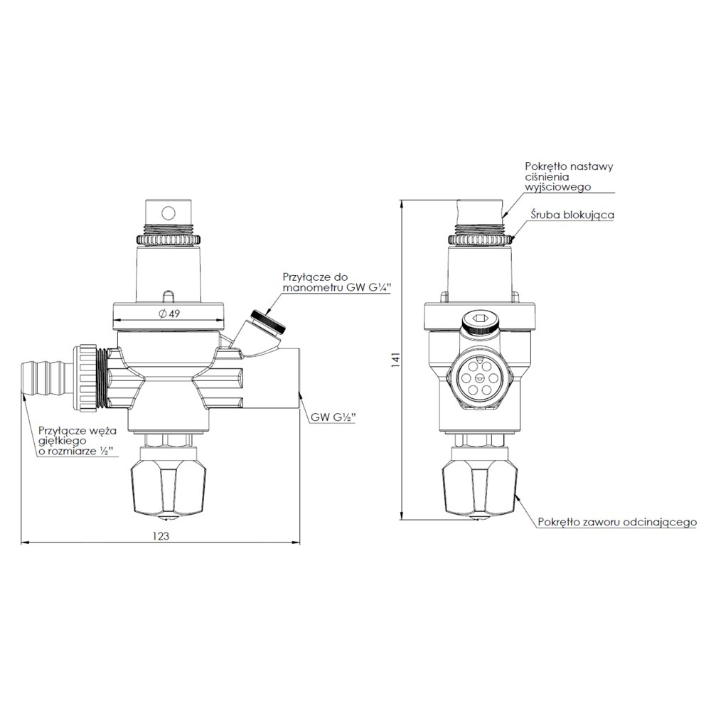 Składa się z reduktora ciśnienia, zaworu zwrotnego, zaworu odcinającego i przyłącza do węża giętkiego.