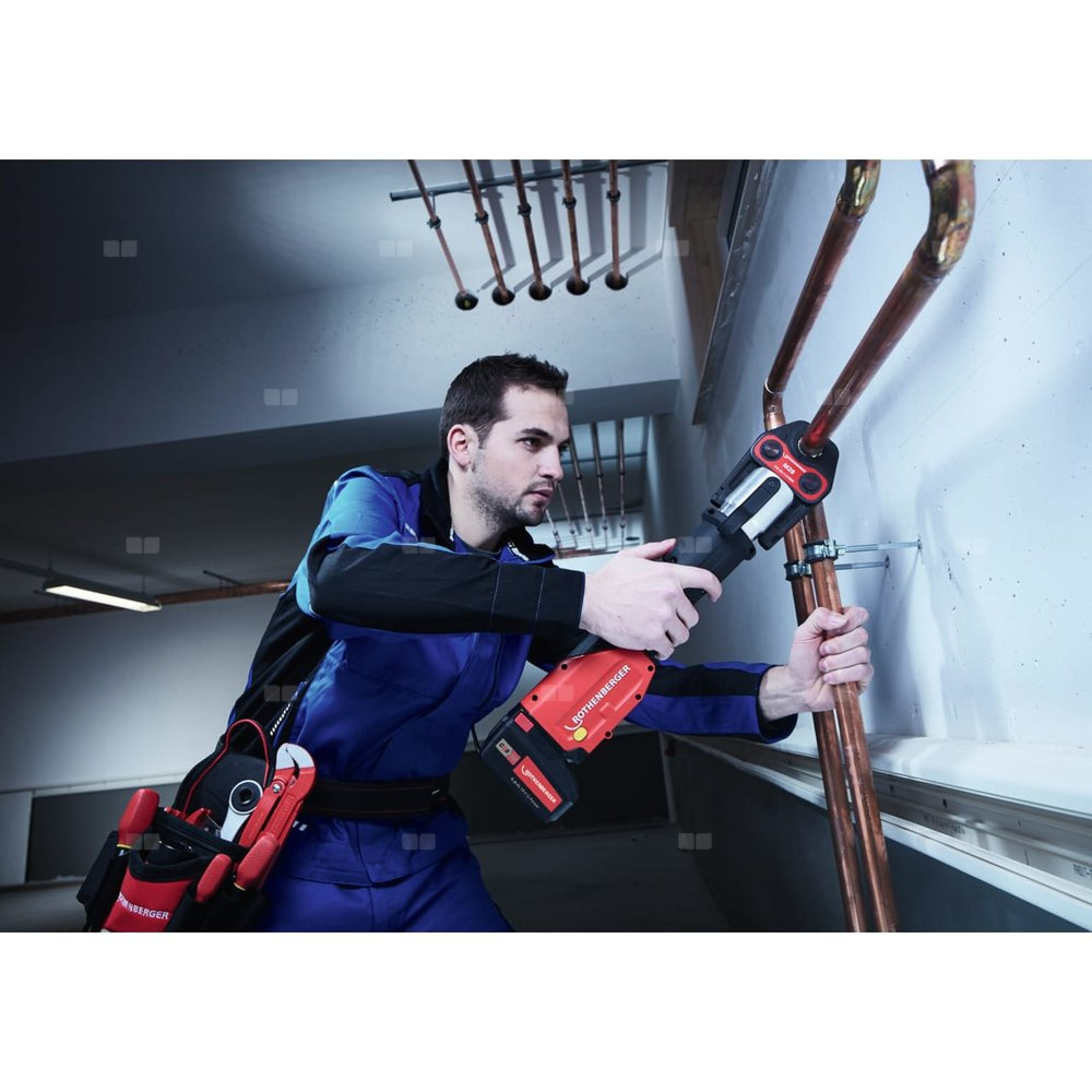 ROMAX 4000 to elektrohydrauliczna zaciskarka akumulatorowa do systemowego zaciskania kształtek o średnicy do 110 mm (w zależności od systemu) z siłą 32-34 kN. Ulepszona i wydajniejsza technologia akumulatorowa pozwala na zwiększenie liczby zaprasowań na jednym ładowaniu. Niewielka waga wynosząca zaledwie 3,6 kg i zrównoważone rozłożenie ciężaru zmniejsza zmęczenie i umożliwia pracę w bardziej ergonomiczny i oszczędzający siły sposób nawet podczas długotrwałego i nieprzerwanego użytkowania. Technologia CFT gwarantuje stałą siłę nacisku podczas każdego cyklu prasowania. Wydłużony interwał międzyobsługowy wynoszący 40 000 zaprasowań lub 2 lata skraca czas przestoju i zwiększa wydajność.