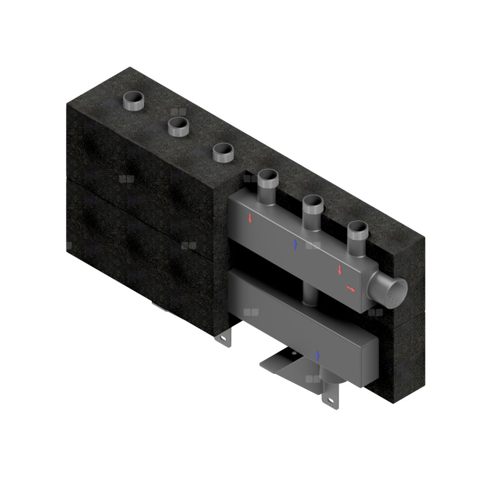 Dwukomorowy stalowy kolektor kaskadowy C 2 100 - DN 50 został stworzony w celu połączenia pomp ciepła w kaskadzie. Fabrycznie wyposażony jest w szczelnie dopasowaną izolację EPP oraz uchwyty naścienne. Kolektor stosowany może być do grzania jak i chłodzenia.