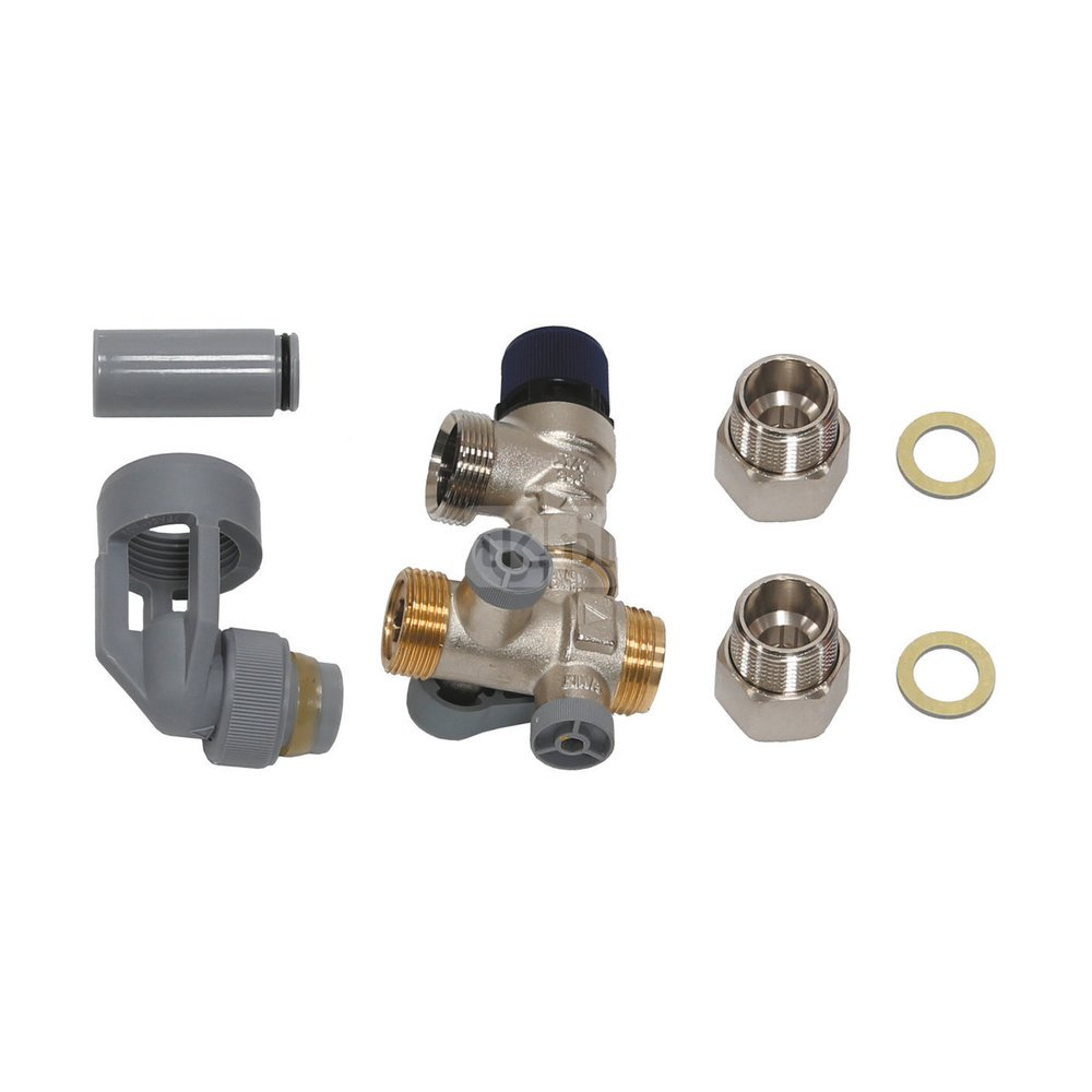 Grupa bezpieczeństwa bez reduktora ciśnienia wody zasilającej (niklowana, dla maks. Ciśnienia zasilania 10 barów)