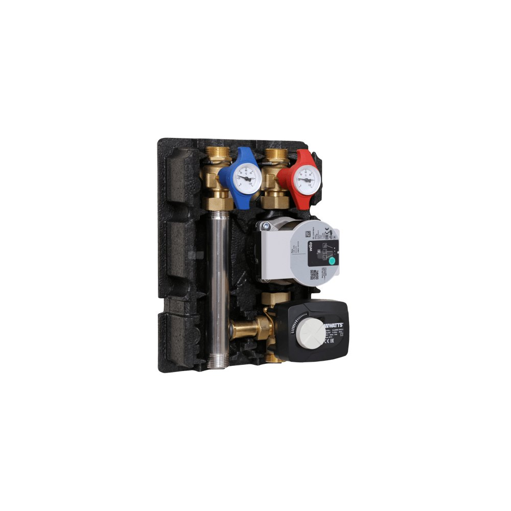 Kompaktowa grupa pompowa DN 20 do obsługi obiegów mieszaczowych. 3-częściowa opatentowana izolacja z EPP zgoda z GEG (przepisy niemieckie o oszczędzaniu energii).