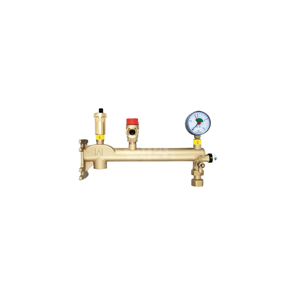 Manometr i odpowietrznik wyposażone w zawory montażowe.