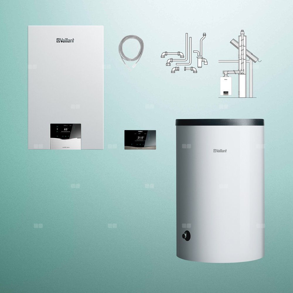 Pakiet - Kocioł gazowy jednofunkcyjny VAILLANT ecoTEC plus VC 20CS/1-5 kondensacyjny wiszący 2.8 - 21 kW + RegulatorsensoCOMFORT 720f + Zestaw powietrzno-spalinowy szachtowy + Zasobnik c.w.uVIH R 200/6 B