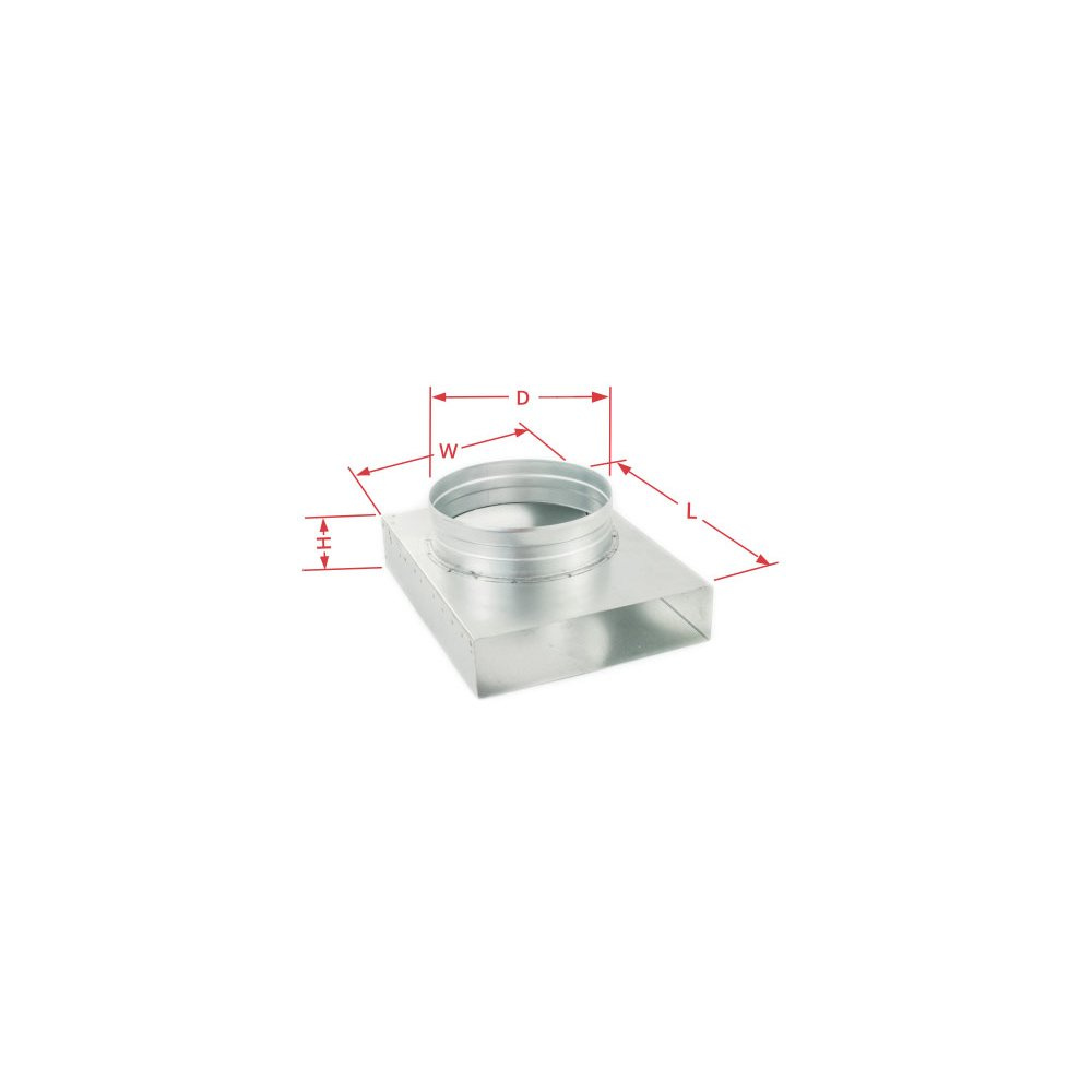 Kształtka służy do przejścia z kanału okrągłego na prosty, np. przy zakończeniu pionu wentylacyjnego.