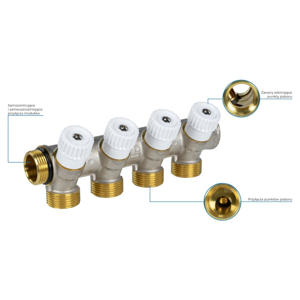 Stosowany w instalacjach wody użytkowej.Montowany do istniejącego rozdzielacza w szafce rozdzielacza.