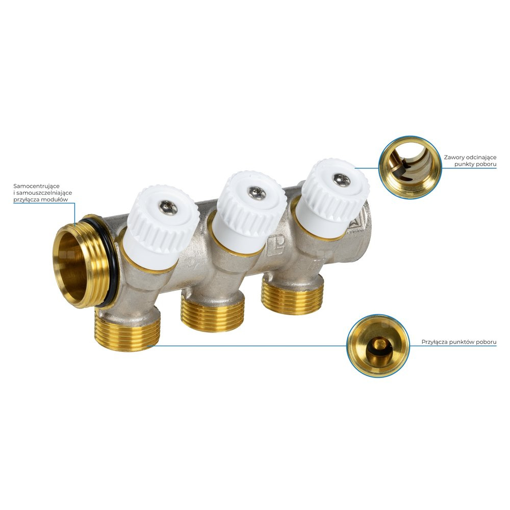 Stosowany w instalacjach wody użytkowej.Montowany do istniejącego rozdzielacza w szafce rozdzielacza.