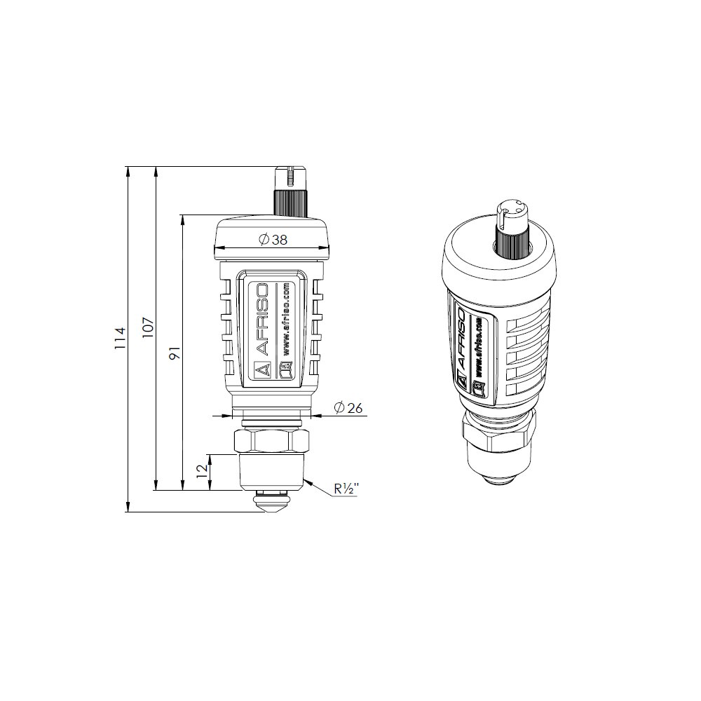- Zawór stopowy umożliwia łatwą wymianę i konserwację odpowietrznika bez konieczności spuszczania medium z instalacji.