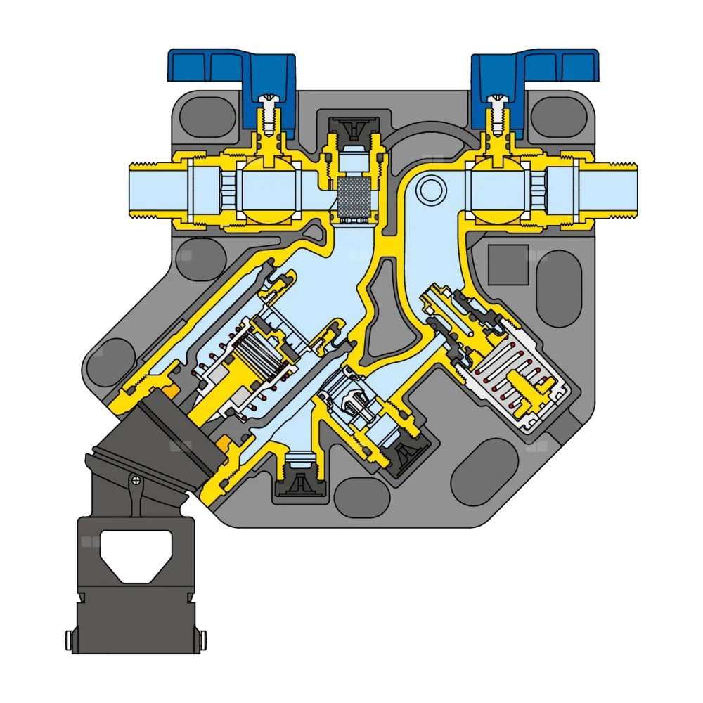 Korpus z mosiądzu odpornego na odcynkowanie.