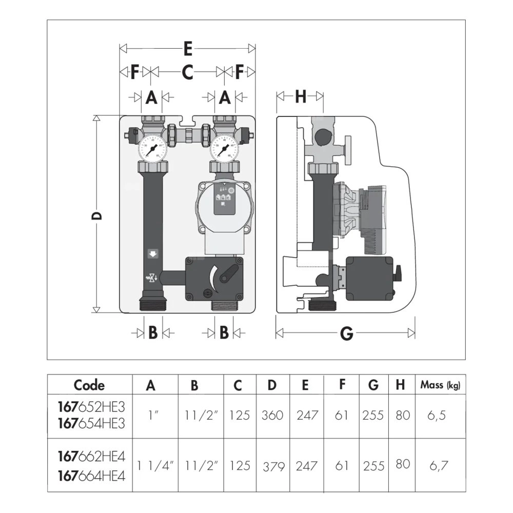 Grupa pompowa z trójdrogowym zaworem mieszającym z siłownikiem dla instalacji grzewczych i chłodniczych 1" GW