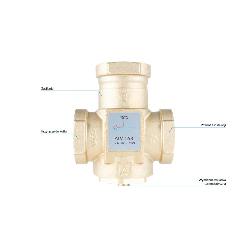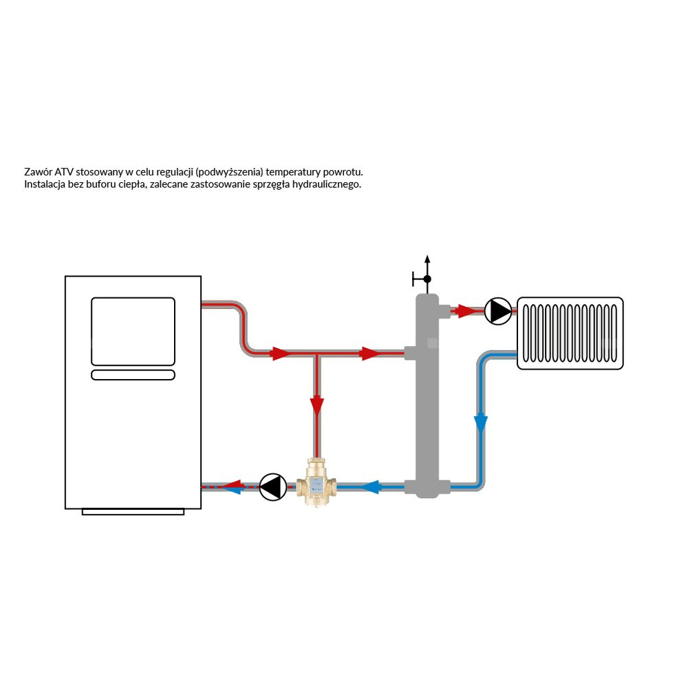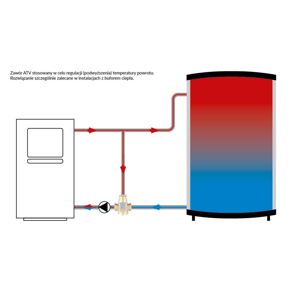 Stosowany w instalacjach grzewczych z kotłami stałopalnymi, zalecany szczególnie do instalacji z buforami ciepła.Montowany na powrocie z instalacji.