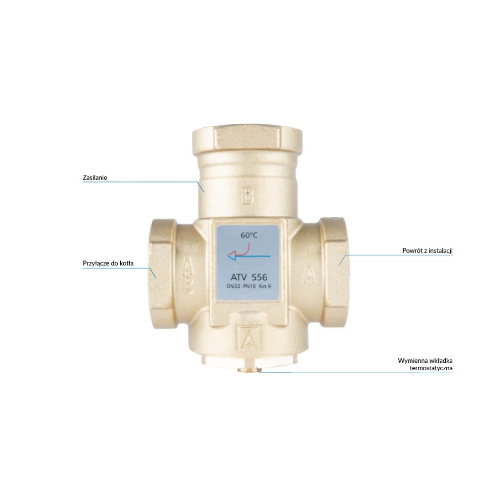 Stosowany w instalacjach grzewczych z kotłami stałopalnymi, zalecany szczególnie do instalacji z buforami ciepła.Montowany na powrocie z instalacji.
