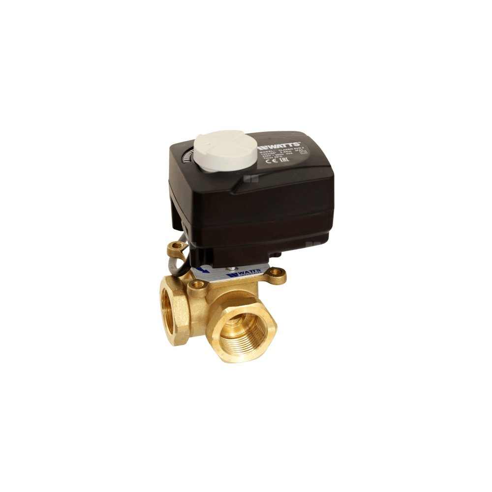 Trójdrogowy zawór mieszający (może być również stosowany jako rozdzielający) wyposażony